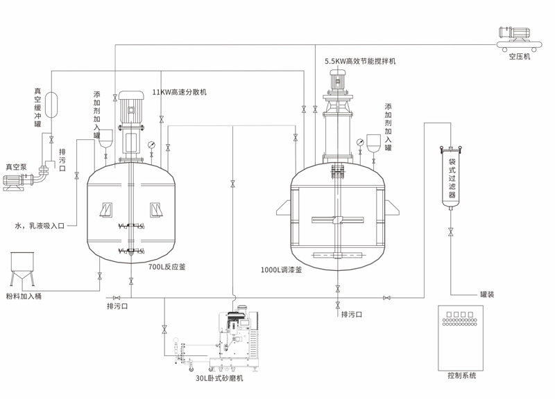 | 2 | 調(diào)漆釜 | 不銹鋼 | 1 | 臺(tái) | 1000L、抽真空 |