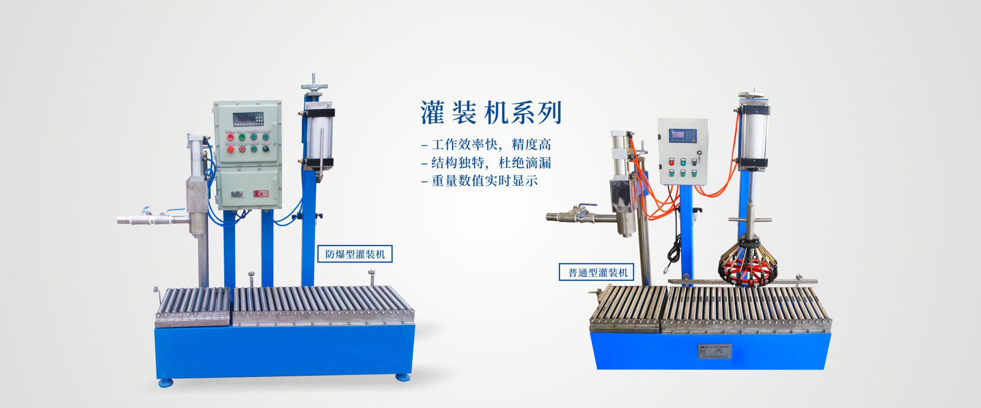 HGZ—01型電子稱重式灌裝機(jī)采用壓力出料結(jié)構(gòu)。結(jié)構(gòu)新穎、造型美觀、操作維護(hù)方便,物料靠壓力進(jìn)入到灌裝機(jī),物料先以大量進(jìn)行快速灌裝,到設(shè)定的快加量時(shí)進(jìn)行小流量灌裝,等到設(shè)定值灌裝完畢,稱重系統(tǒng)采用高精度傳感器及新一代數(shù)字控制系統(tǒng),對(duì)灌裝精度起到了可靠地保障。