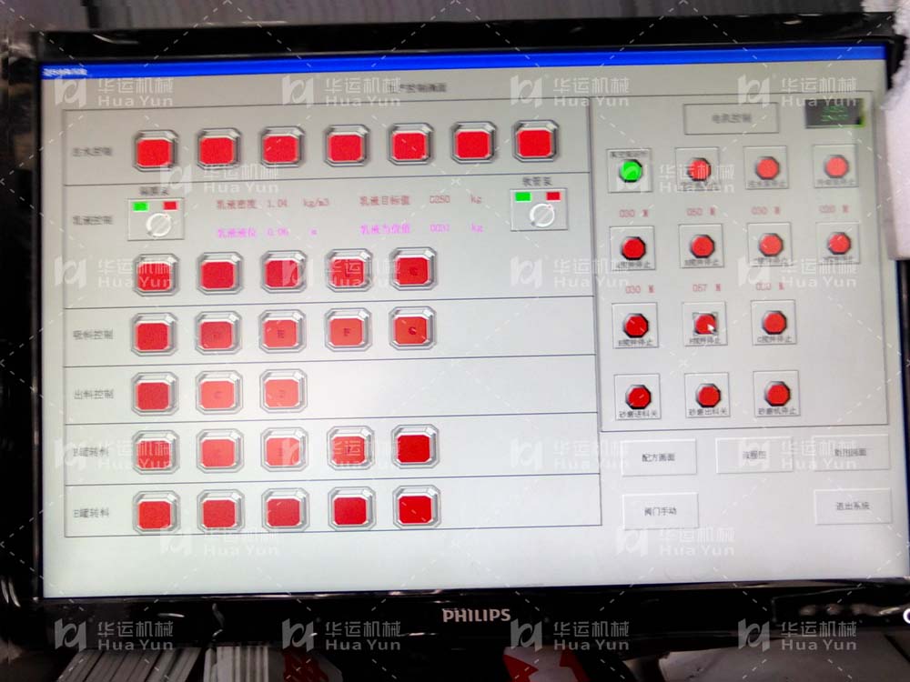 3.自動(dòng)化控制系統(tǒng)由PLC,工業(yè)計(jì)算機(jī)及工業(yè)組態(tài)軟件等組成,操作臺(tái)帶模擬圖形,鼠標(biāo)點(diǎn)擊即可完成配方設(shè)置及助劑進(jìn)料等操作。